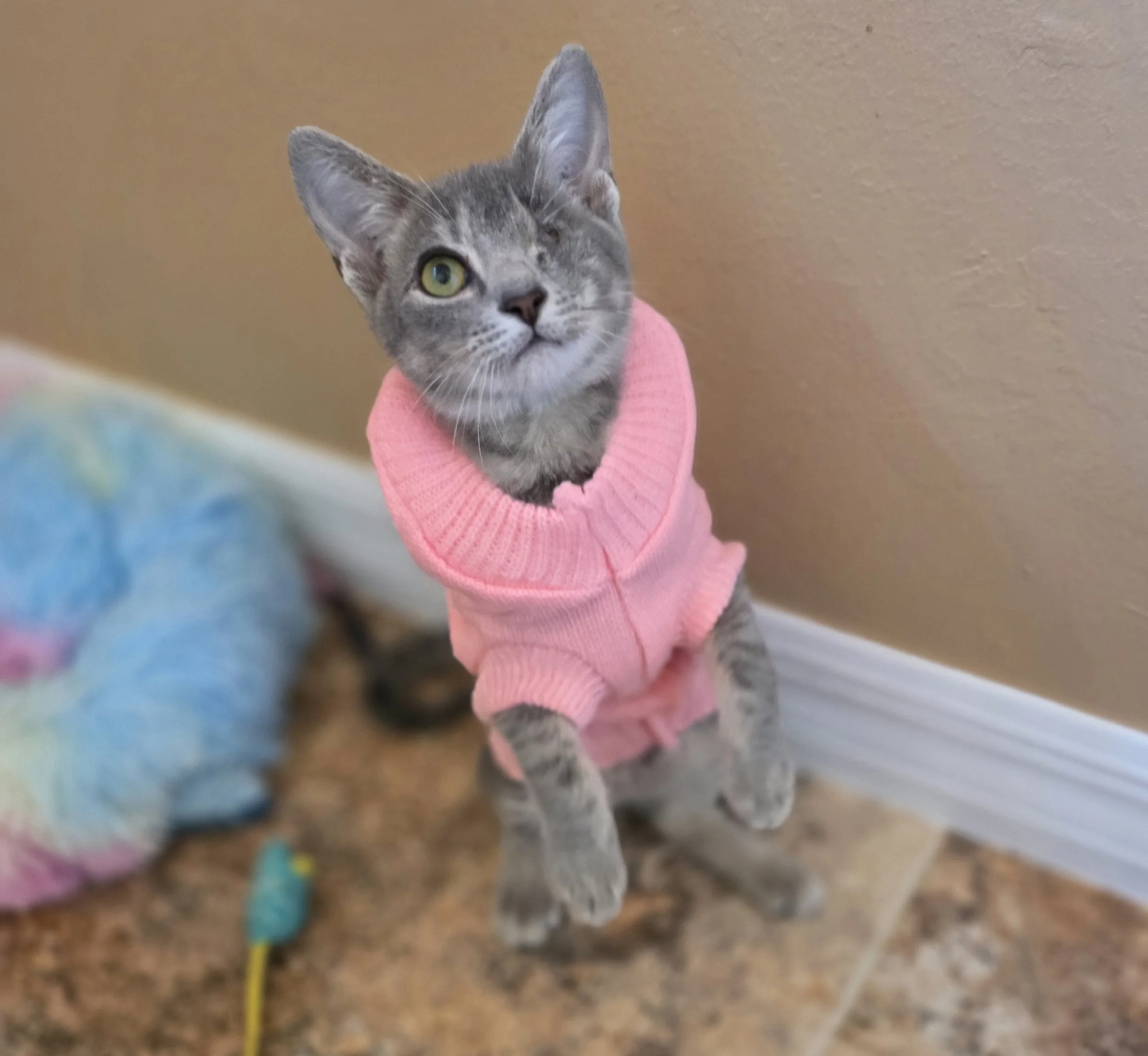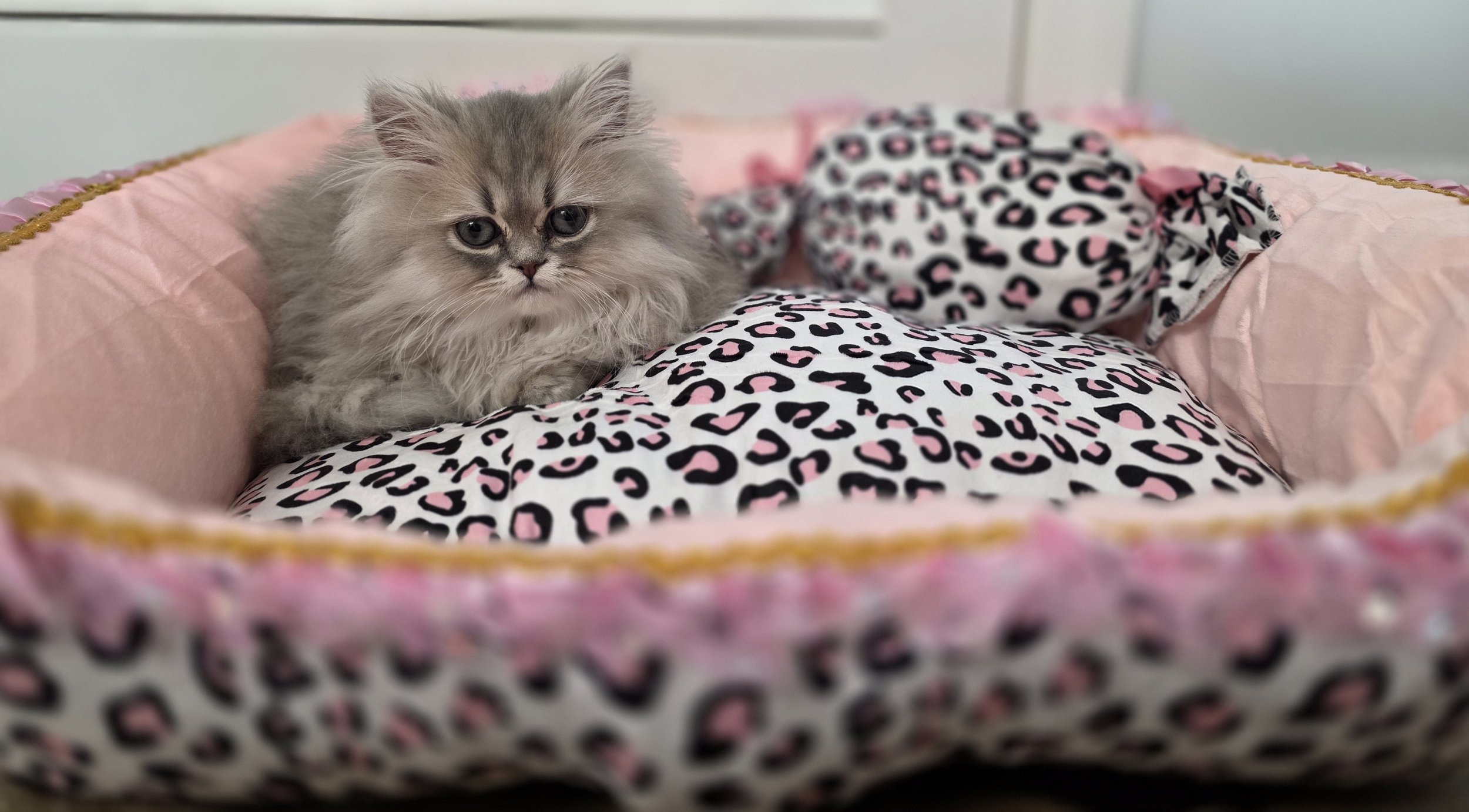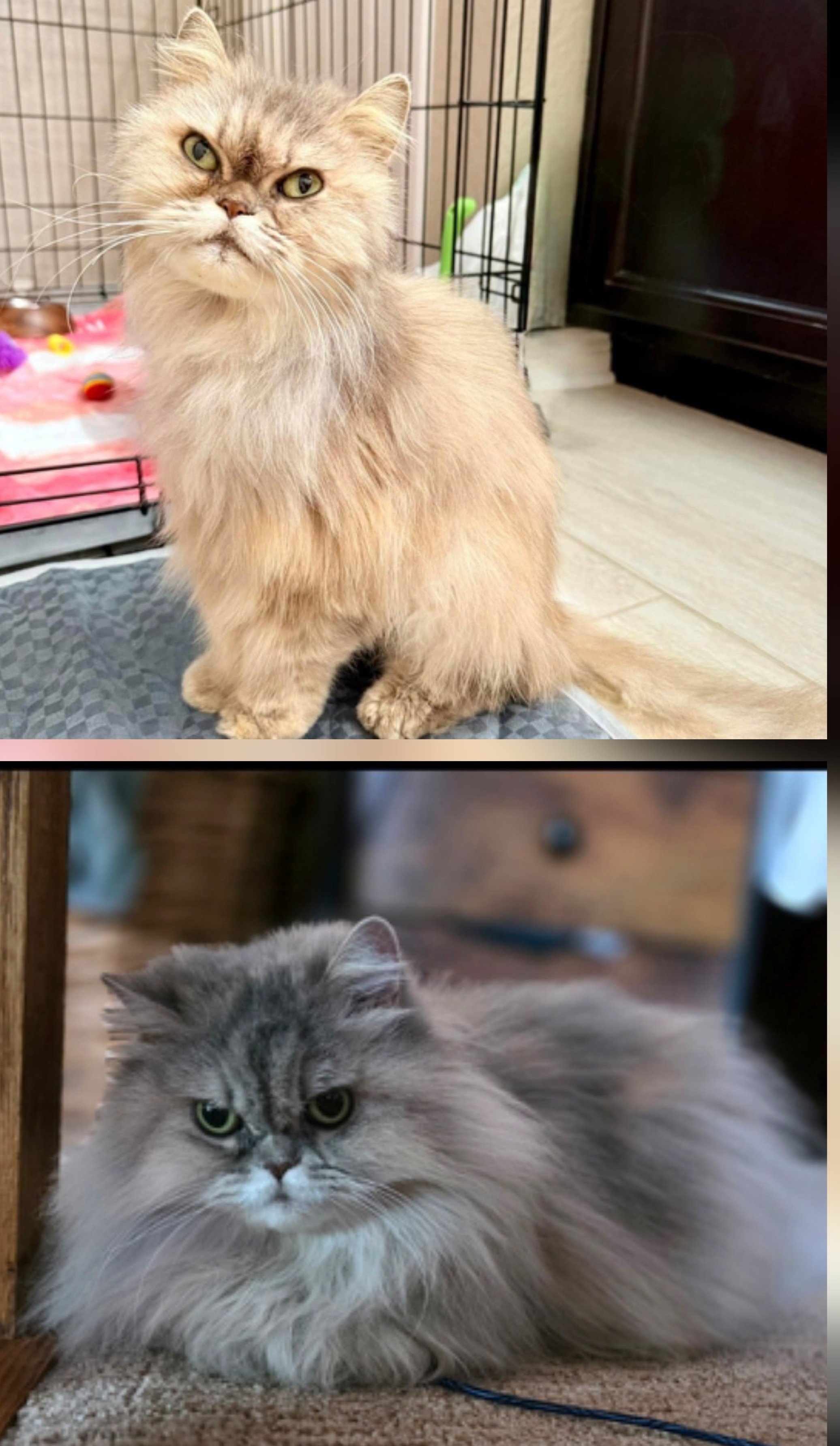 At Bella Del Gatto, we rescue, foster and rehabilitate kittens and cats all year long. We partner with several local rescues and humane societies and have dozens of rescues in our home throughout the year. Please consider fostering and helping the stray cat population who are sick and dying outside. These are now all of our beloved pets and why we need a bigger house. They each have their own story of survival and some were very near to death when they found us. You can see Honey’s before and after right below this text{Persian}. Dara in the pink sweater had to have her eye removed at only 2 pounds. Goldie the persian in the middle had to have her full leg amputated at only 2.5 pounds. Donatello bottom middle was attacked by a coyote and barely alive with his flesh hanging off, ears and jaw chewed off and eyes not open. 4 surgeries later and he beat all of the odds. They all have a story. They all deserve love. They have all endured more than they ever should have at the hands of humans.